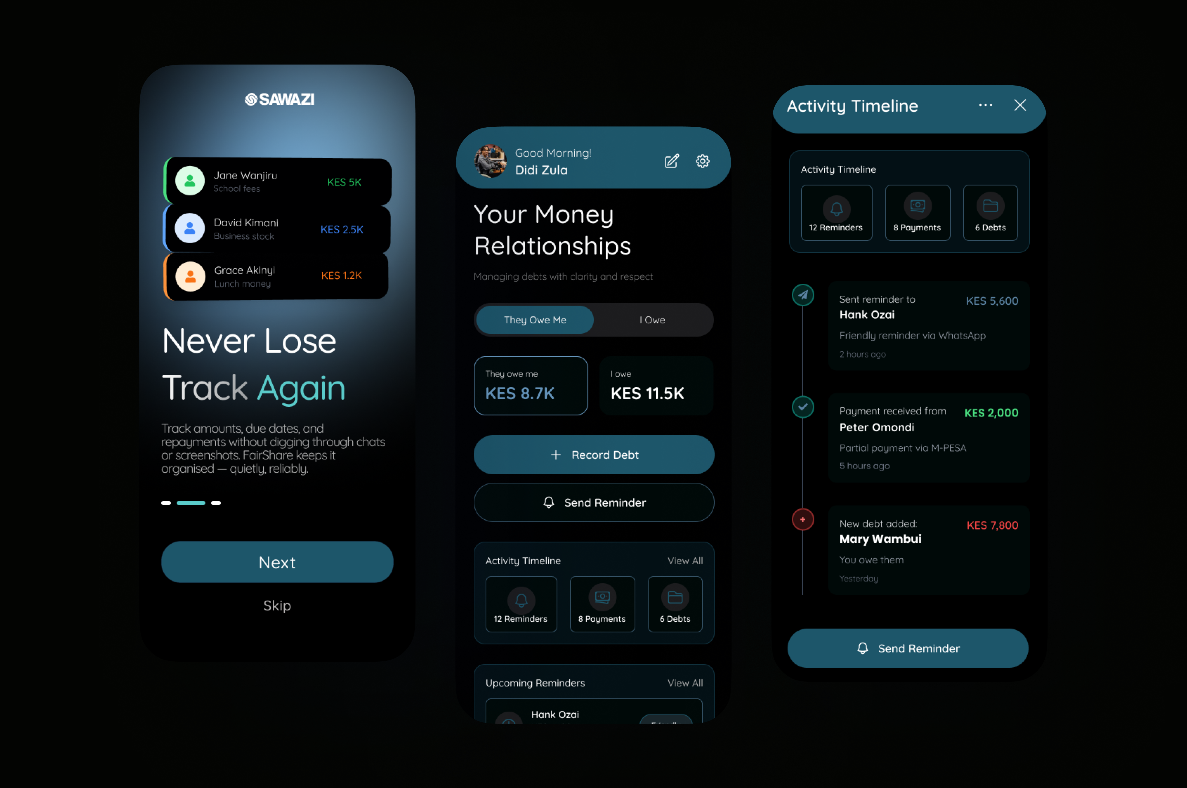 Sawazi demonstrates how a product can shift the experience of informal debt from stressful and opaque to manageable, relational, and transparent, highlighting the value of behavior-driven, emotionally intelligent UX in complex social systems.
